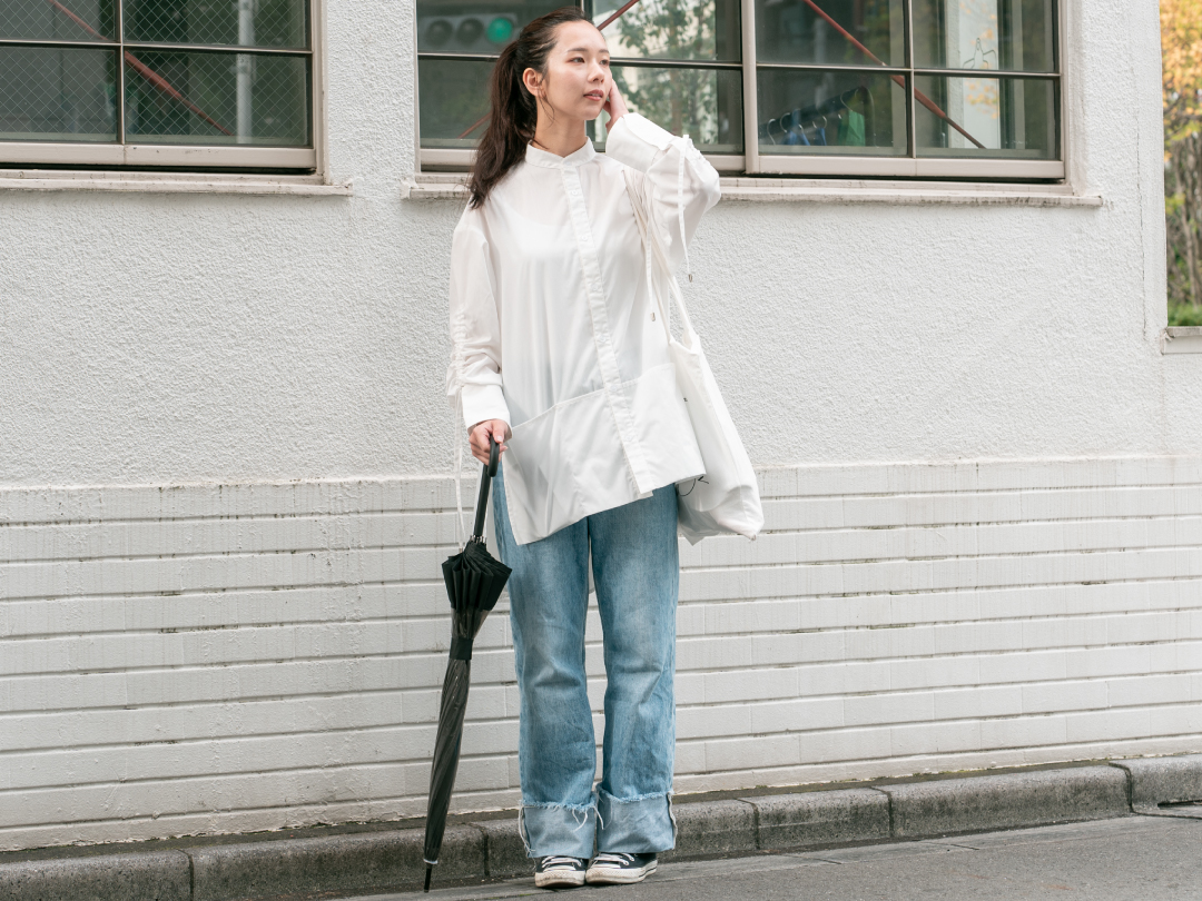 傘をまとめやすい太めのバンドはHUS.の織ネーム付き。ハンドルは、長時間の使用でも負担にならないよう、握りやすくラウンドした形状に仕上げました。雨の日の何気ない動作ひとつひとつを、少しでも快適にこなせるように、細部までこだわり抜いて作られています。