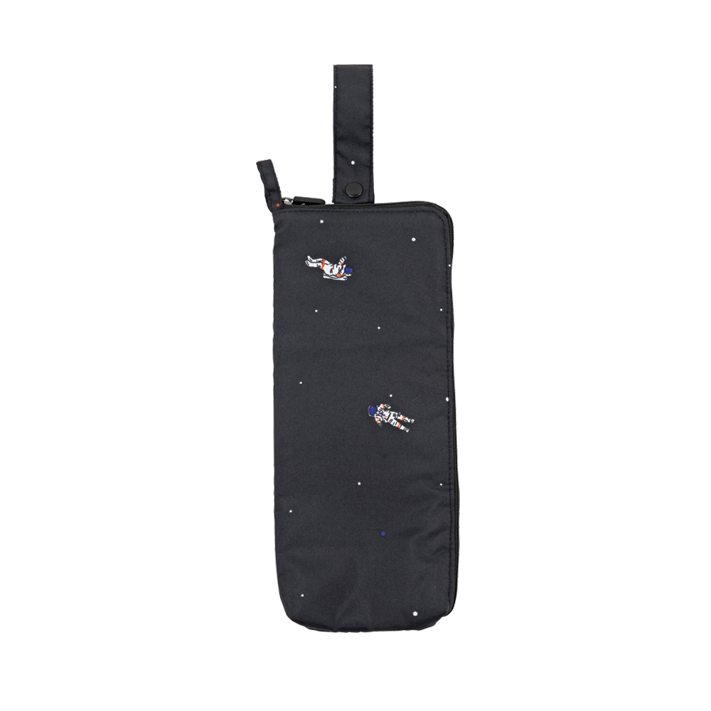 傘ケースの外側には傘と同じ撥水加工生地を、内側にはタオル生地を使用しており、傘についた水滴を吸収します。